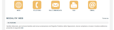 Via e-mail tramite l'apposito modulo PDF di iscrizione al servizio gratuito, inserendo tutti i dati necessari da inviare poi a iscrizione@registrodelleopposizioni.it.