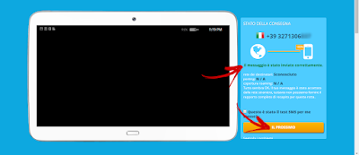 - Immetti nella nuova pagina il messaggio di testo (max 140 caratteri), clicca nel campo captcha e subito dopo su prossimo.